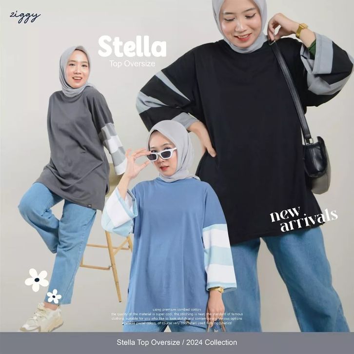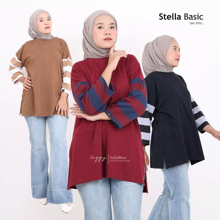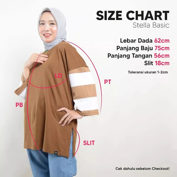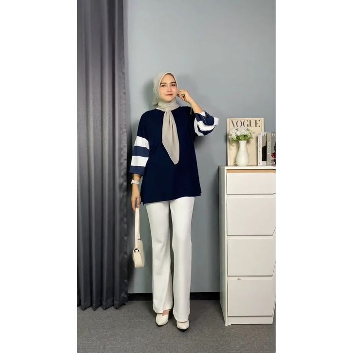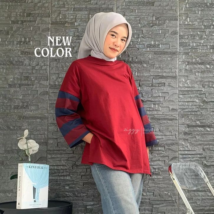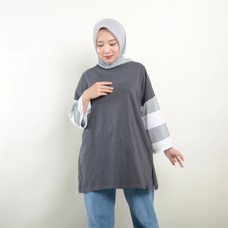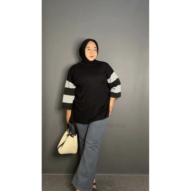KAOS OVERSIZE WANITA LENGAN 7/8 KAOS WANITA KEKINIAN TSHIRT WANITA KAOS SALUR WANITA KOMBINASI STRIPE