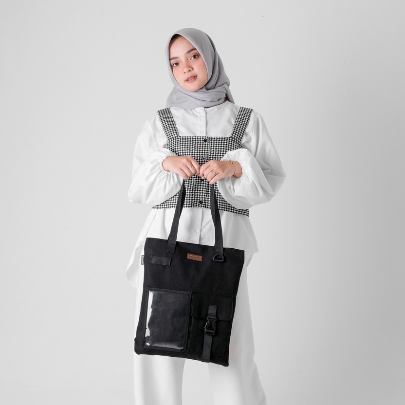 PAMOLE - TAS TOTE BAG BAHAN KANVAS PENUTUP RESLETING PAKAI FURING - UNISEX - AREL SERIES