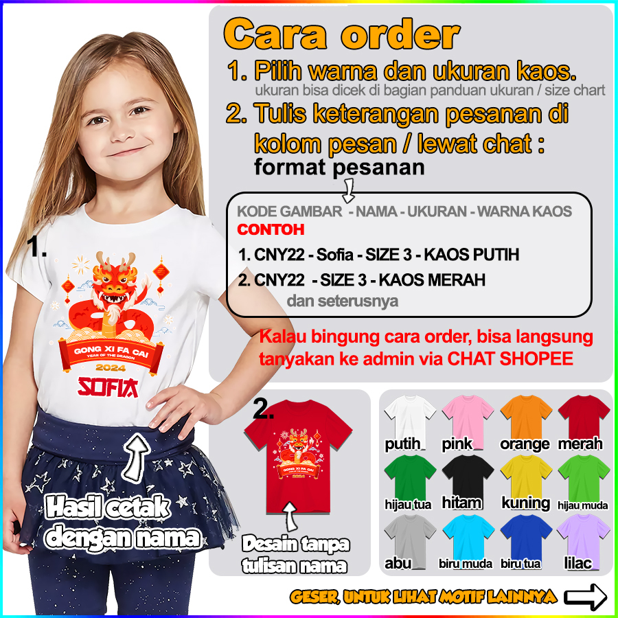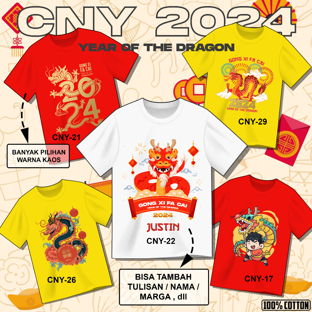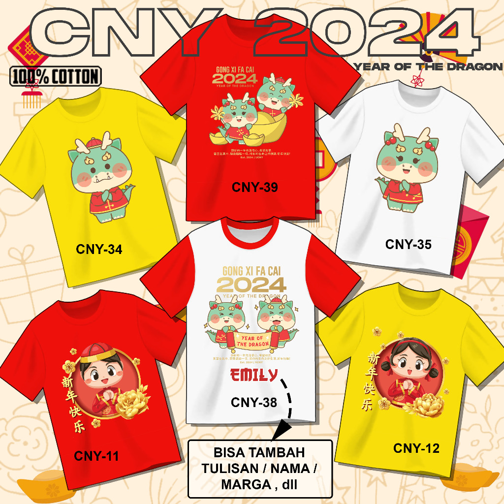 BAJU KAOS ANAK DAN DEWASA SINCIA IMLEK CHINESE NEW YEAR COUPLE (FREE NAMA)
