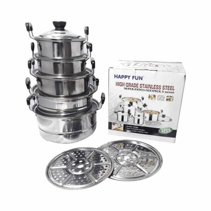 panci steamer set 5 susun tutup stenlis / Panci + Steamer Set 5 Susun Stainless