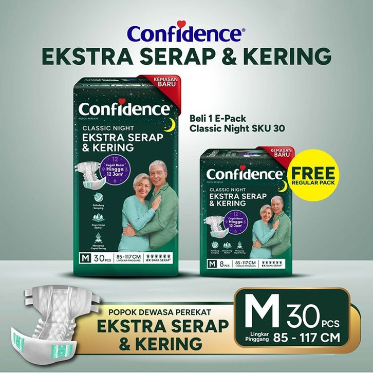 Pampers Pemper Pempers Confidence Popok Dewasa Perekat Classic Night Ekstra Serap Kering M30 + Free 1 Small Pack