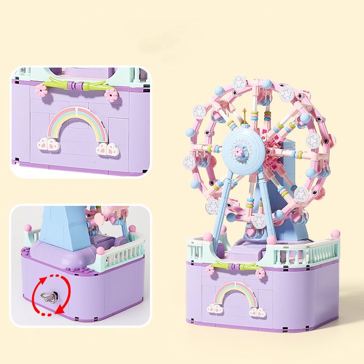 JAKI Kotak Musik Merry-Go-Round Partikel Dirakit Blok Bangunan Ferris Wheel Music Box Mainan Edukasi