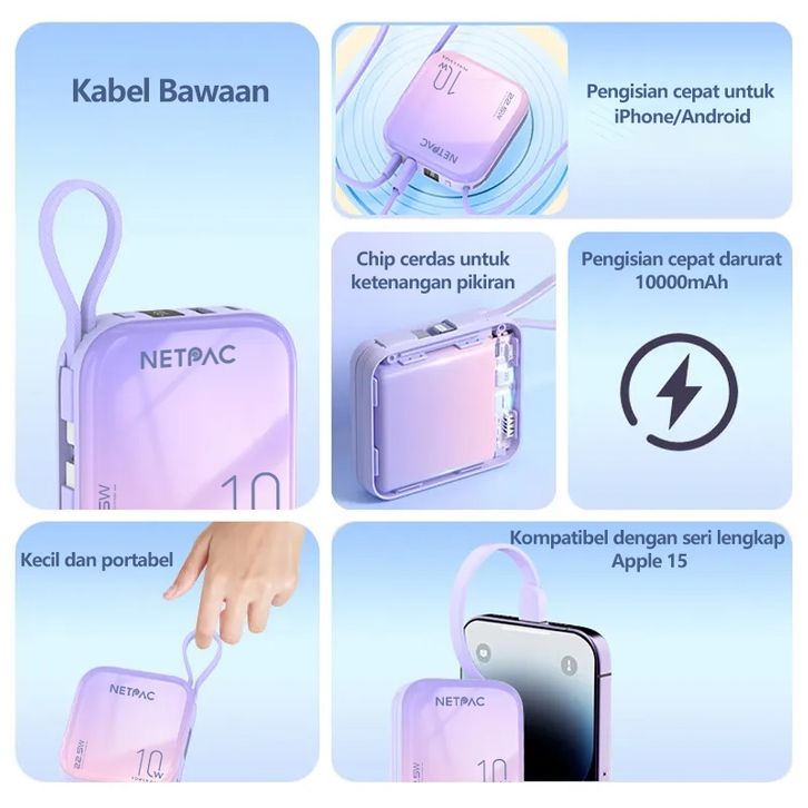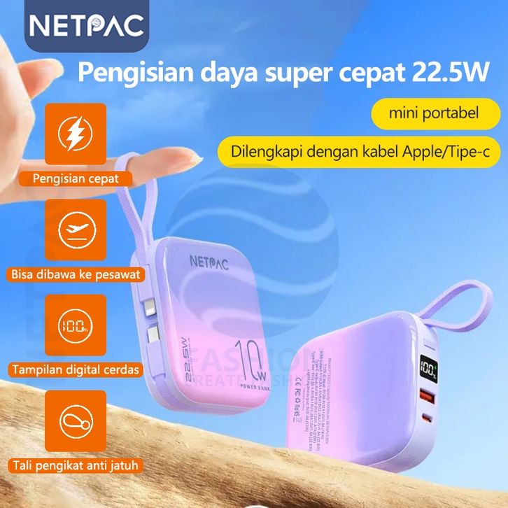 NETPAC PT002D POWERBANK MINI FAST CHARGING 10000MAH DIGITAL LED USB 3 OUTPUT PENGISIAN CEPAT POWER BANK
