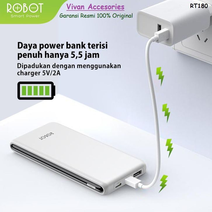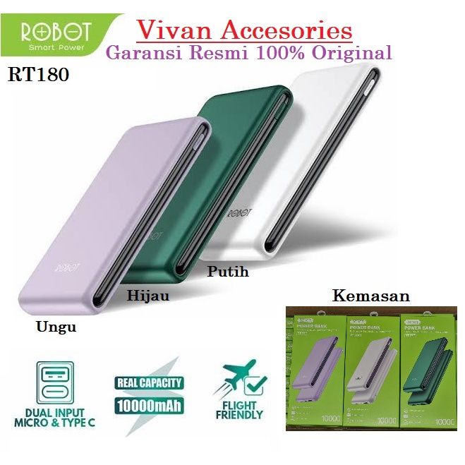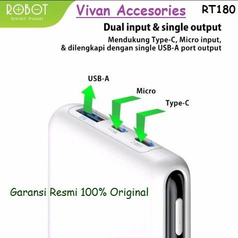 POWERBANK POWER BANK ROBOT RT180 / RT12 10000MAH DUAL INPUT TYPE C & MICRO
