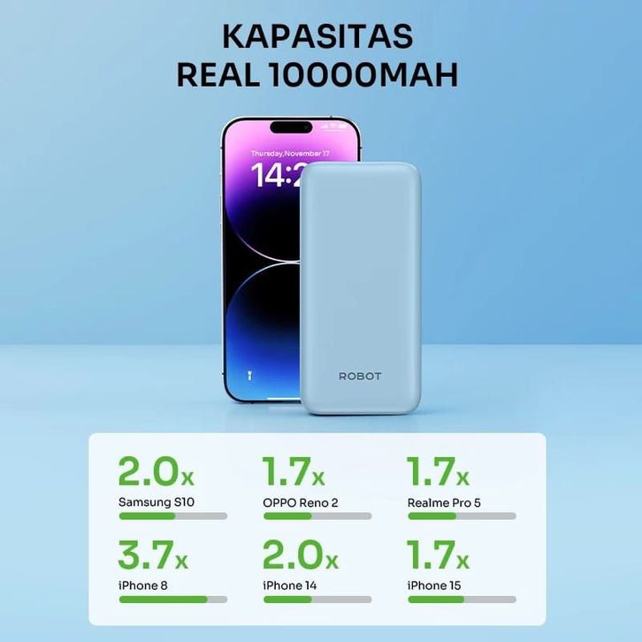 ROBOT RT12 POWERBANK 10000MAH DUAL OUTPUT GARANSI 1 TAHUN READY STOCK