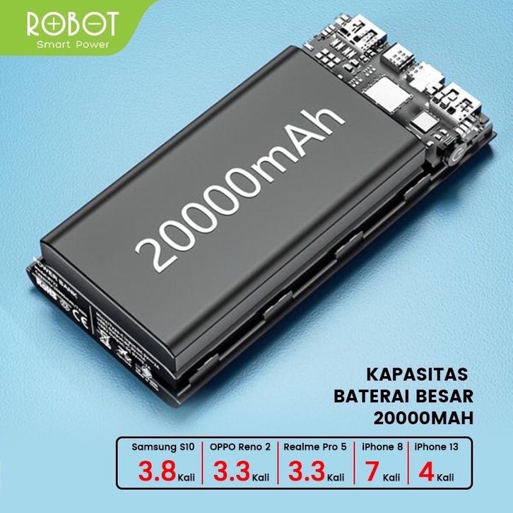 ROBOT POWER BANK RT22 20.000MAH POWERBANK DUAL PORT INPUT & OUTPUT LED INDICATOR GARANSI ORIGINAL RESMI