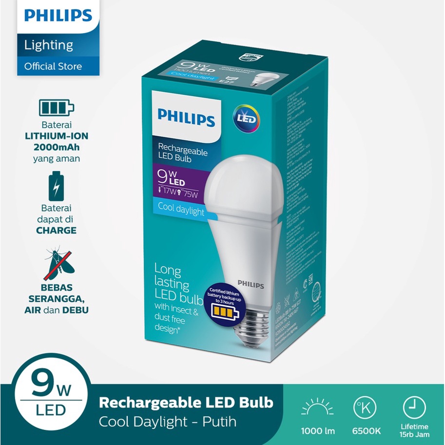 PROMO 5% Lampu Emergency LED Philips Rechargeable LedBulb 9W 9 Watt 9watt 6500K Bohlam Putih Lampu Rumah Awet Terang