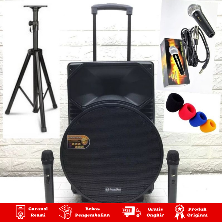 speaker karoke portable 15 inch Soundbest FT 15 Free 2 Mic wirelles ,TERMURAH