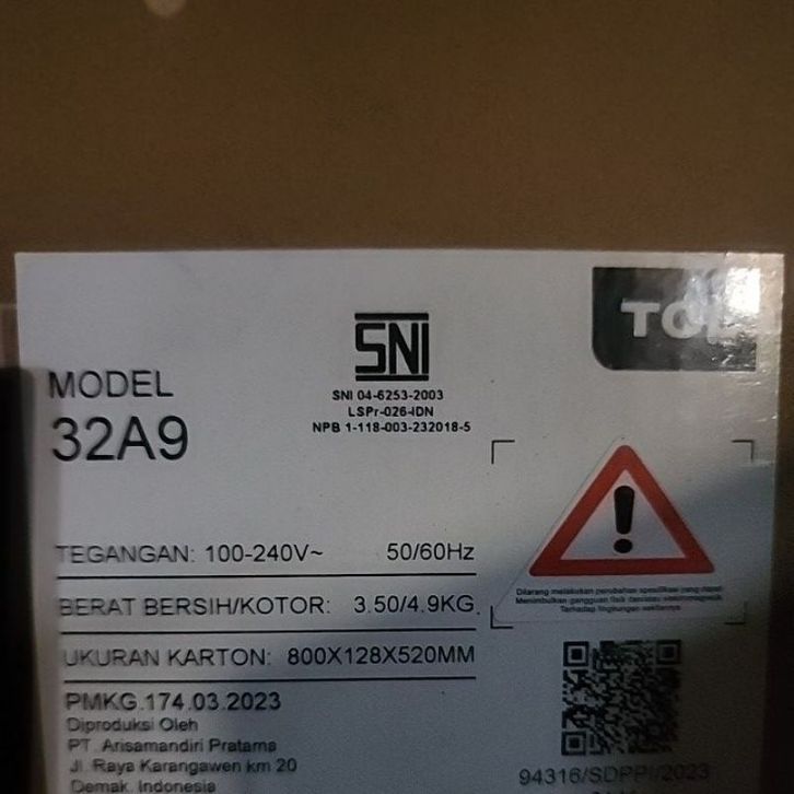 TV TCL 32A9 32 INCH SMART TV ANDROID FHD DIGITAL DBVT2 BEZELLESS TV ANDROID 11 GARANSI RESMI