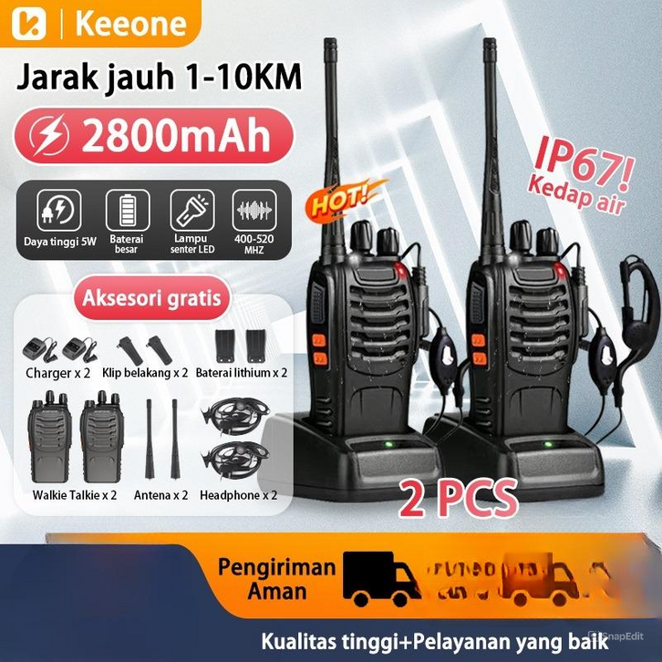 Ht Walkie Talkie Jarak Jauh 10km Max 2800mah Ht Wlan Uhf 2 Units Handy Talky Waterproof Portable With Charger Headset Or