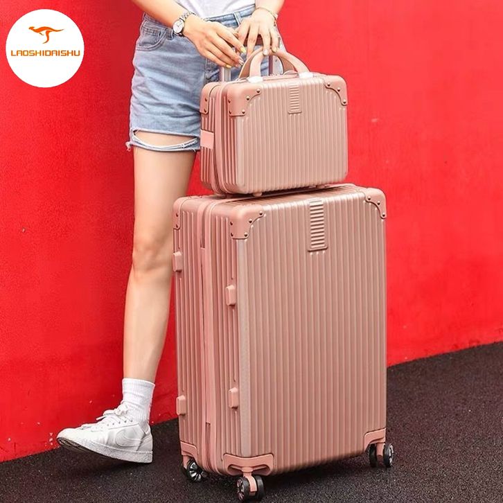 Laoshidaishu Koper 2 in 1 koper 22''24 inch Kabin Bagasi tas koper besar anak perempuan 20 inch Beauty Case koper Mini 1