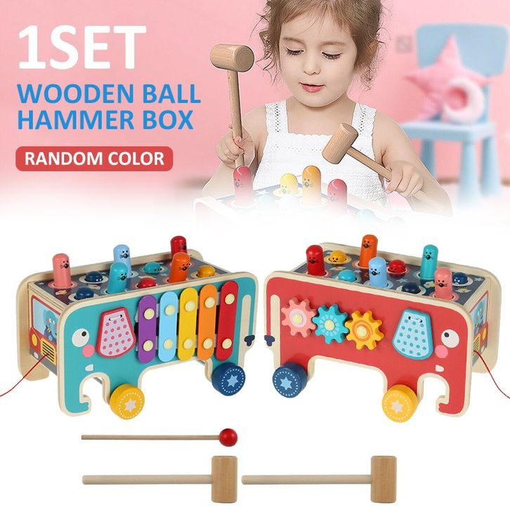 【NODIA】Puzzle Kayu Gajah Whack-A-Mole Permainan Ketukan Pianonya Multifungsi Mainan Trailer Anak