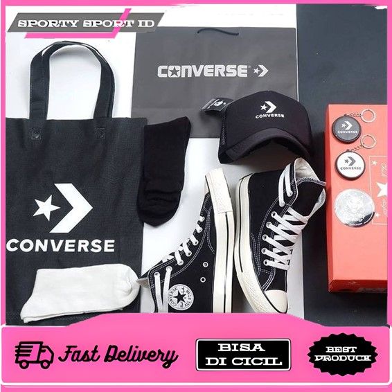 Sepatu Converse pria wanita All Star 70s High Black White Egret [ BANYAK BONUS ]
