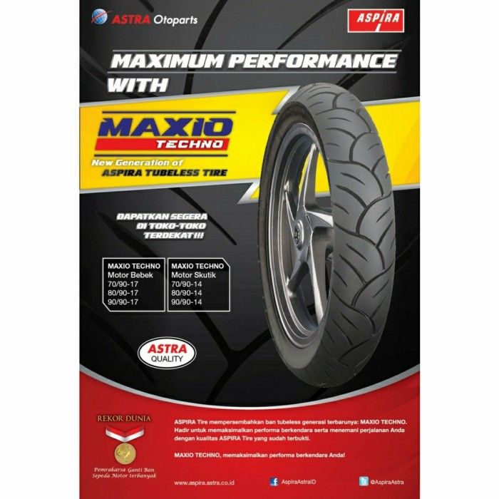 BAN DEPAN BEAT VARIO 110 125 SCOPY SPACY ASPIRA ASTRA 80/90 14 TUBLESS