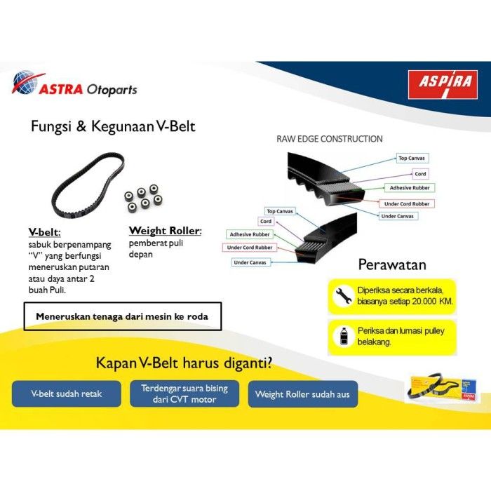 PAKET VAN BELT + ROLLER TYPE KZR MOTOR VARIO TECHNO 125 ASPIRA ORI