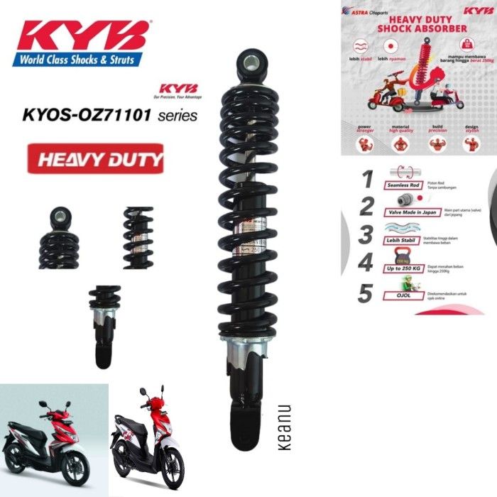 SHOCKBREAKER BELAKANG MOTOR BEAT FI POP STREET KYB HEAVY DUTY 330 MM - Merah