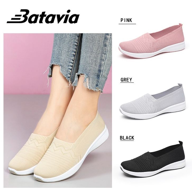 Batavia 2023 sepatu datar baru flyknit sepatu datar wanita rajut udara -sepatu datar wanita berpenduduk sepatu hitam se