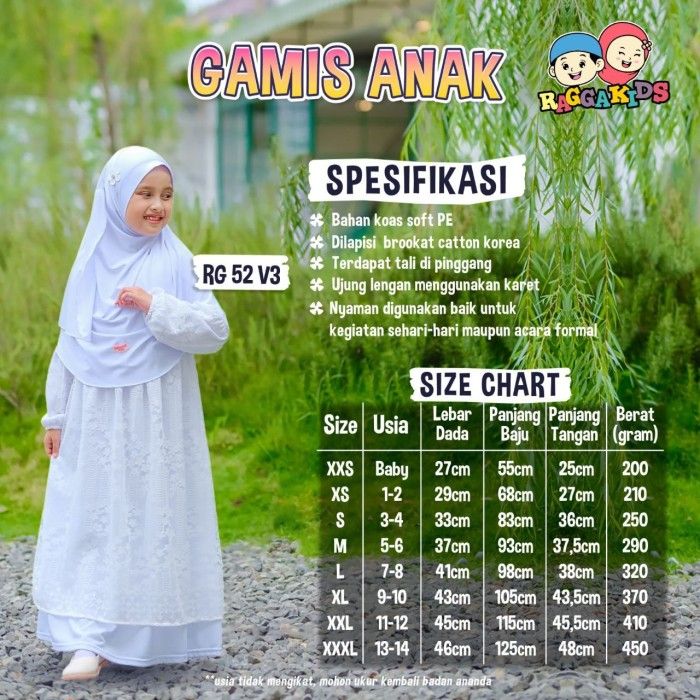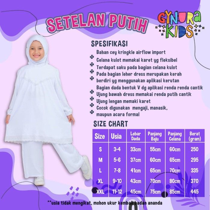 gamis anak perempuan usia 2 12 tahun baju pakaian muslim anak putih 52 -