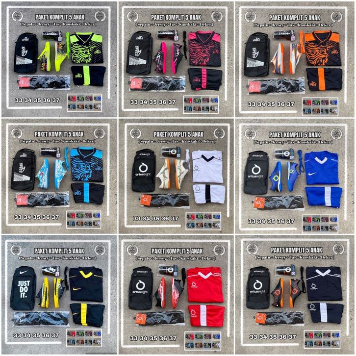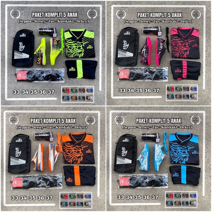 1 Set Lengkap Sepatu Futsal Anak SD SMP Usia 5-15 Tahun Terbaru Paket Komplit 5 Sepatu Futsal Anak Laki Laki Original
