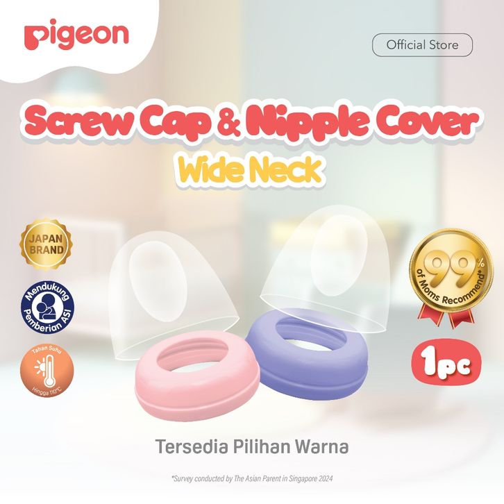 FULLOFJOY PIGEON Screw Cap and Nipple Dot Cover - Wide Neck | Pilih Warna | Biomass-PP | Ketahanan suhu 140°C