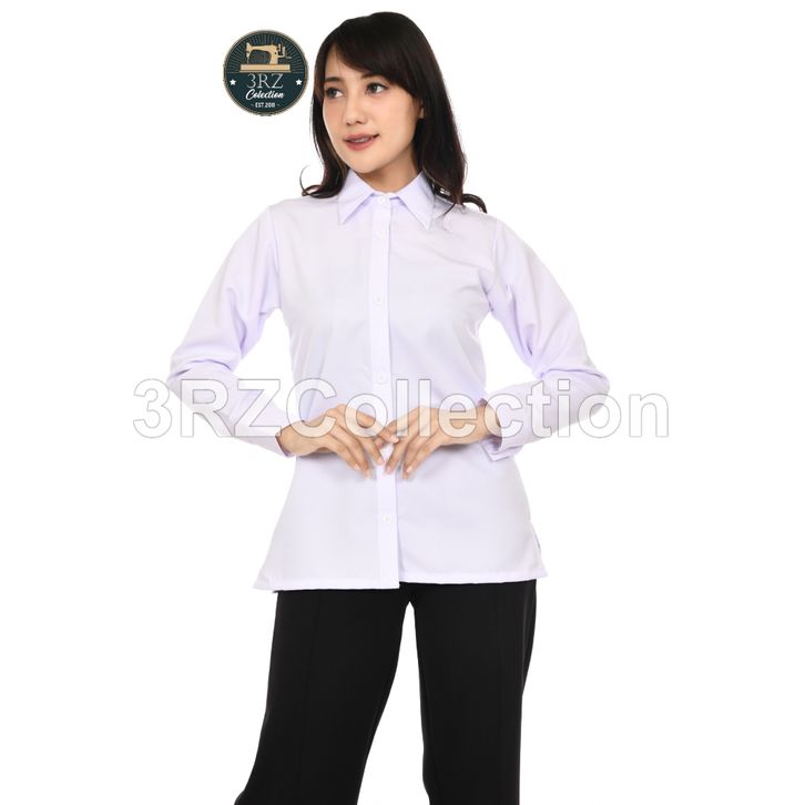 Kemeja Putih Polos Tanpa Saku Wanita Bahan Lembut Lengan Panjang Lengan Pendek