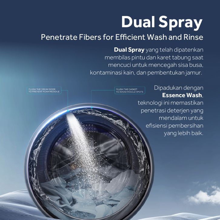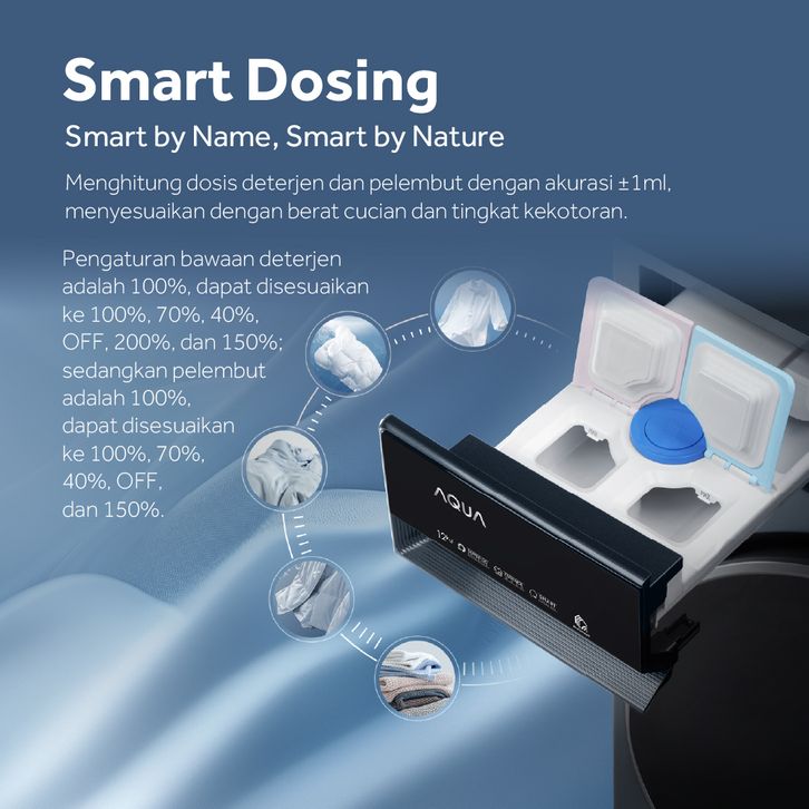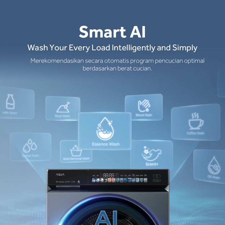 AQUA AW12-BPD4377U1L MESIN CUCI FRONT LOAD 12 KG WIFI HAISMART SMART DUAL SPRAYSMART DOSING ESSENCE WASH ABT PULSATOR