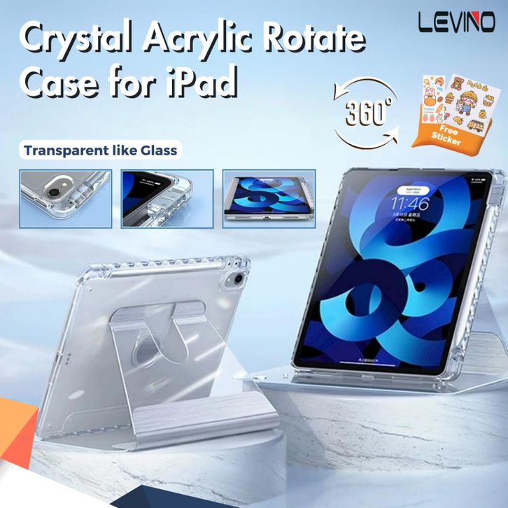 New ! Rotating Acrylic Crystal Case For iPad Gen 7/8/9/10 Pro 11" M1/M2 Air4/Air5 2021/2022 Air M2 11inch 2024
