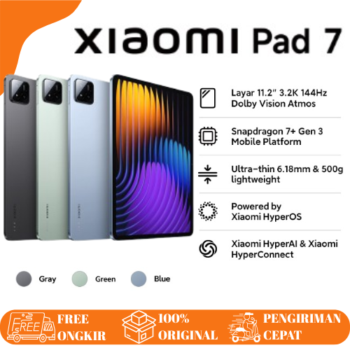 Xiaomi Pad 7 [8/256GB] Layar 11.2 Dolby Vision Atmos Battery 8.850 mAh Snapdragon 7 Gen 3 Official Store Murah Tanpa DP