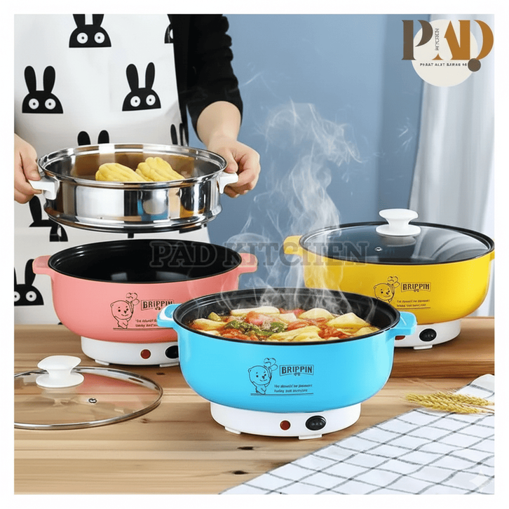 Panci Listrik Beruang Kuping Multifungsi Panci Hot Pot Elektrik Anti Lengket Bisa Fry Steam Rice Cooker Mini Portable