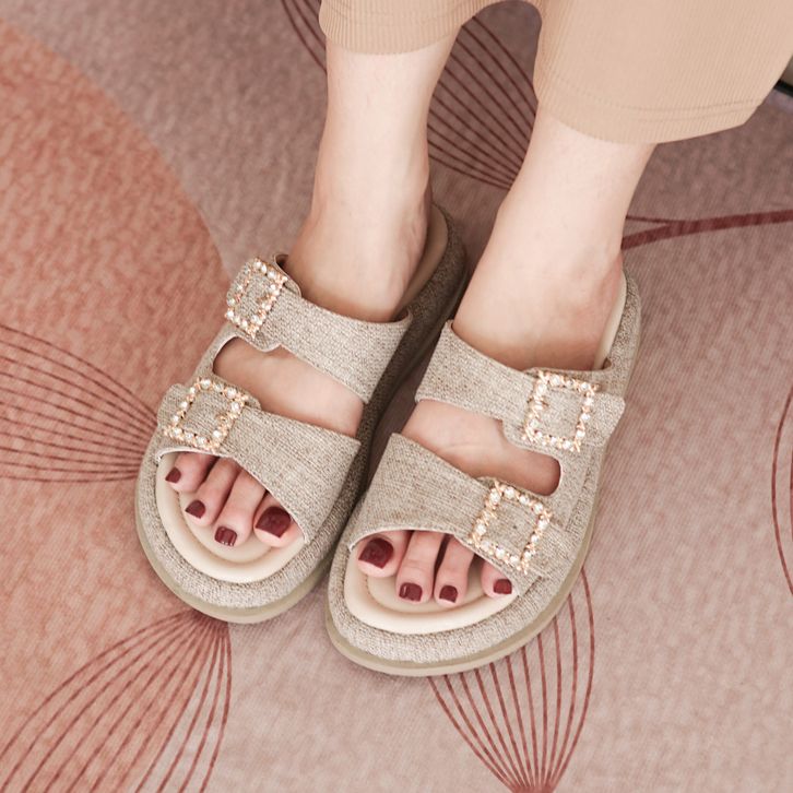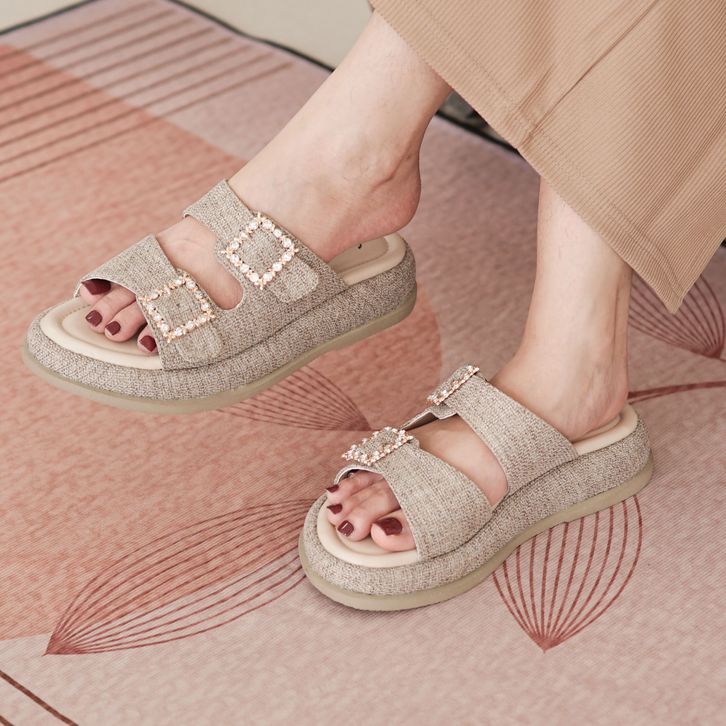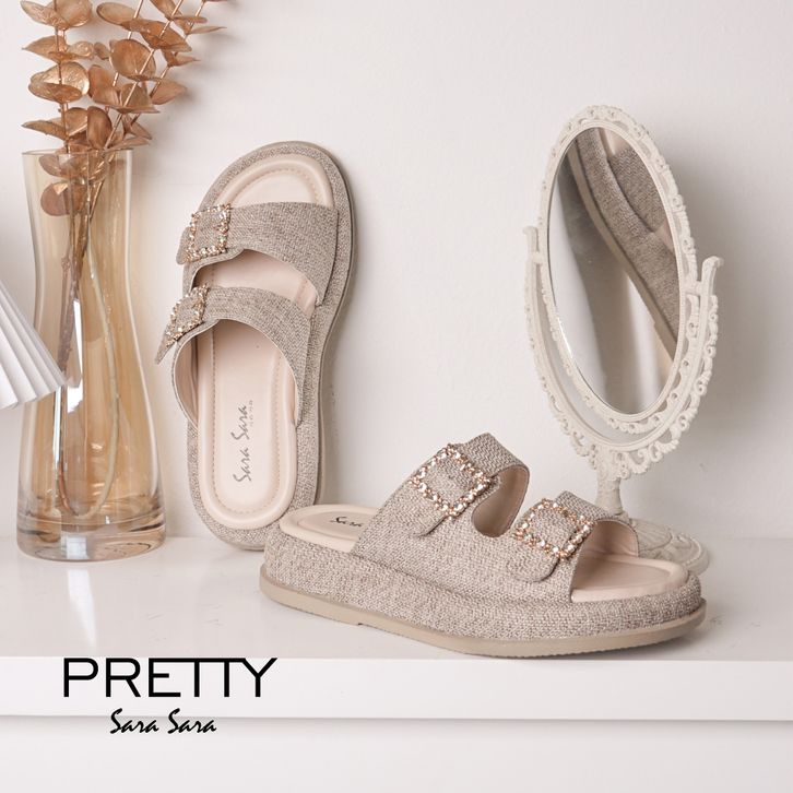 Sara Sara PRETTY Sandal Platform Wanita Kasual Sendal Wedges Cewek Model Dua Gesper Berlian Kekinian