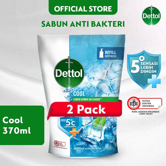 Dettol Sabun Mandi Cair Anti Bakteri Cool Pouch 370ml x2