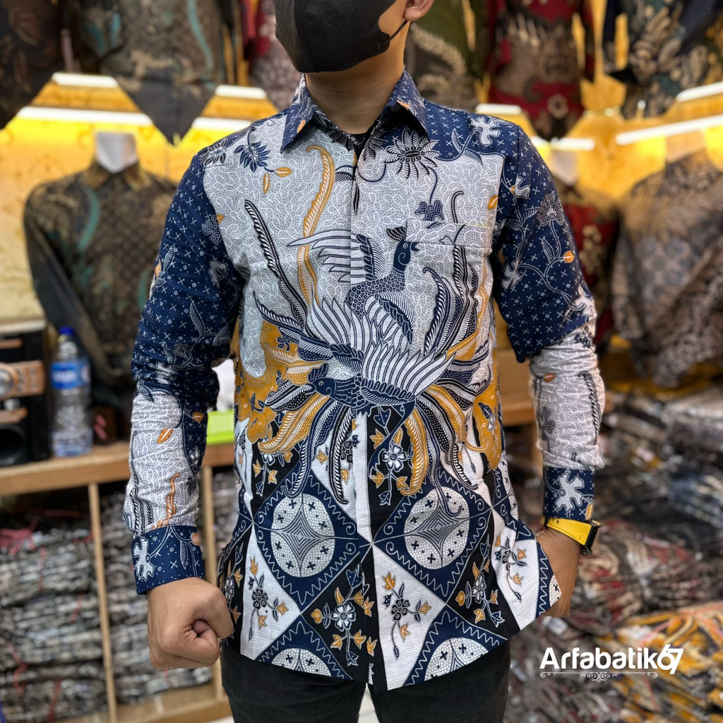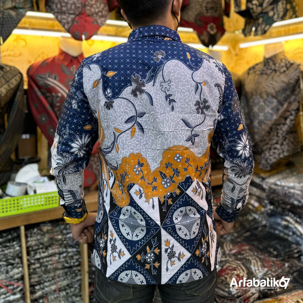 KEMEJA BATIK PRIA LENGAN PANJANG KATUN SOLO LAPIS FURING SERAGAMAN ADINATA BIRU DONKER
