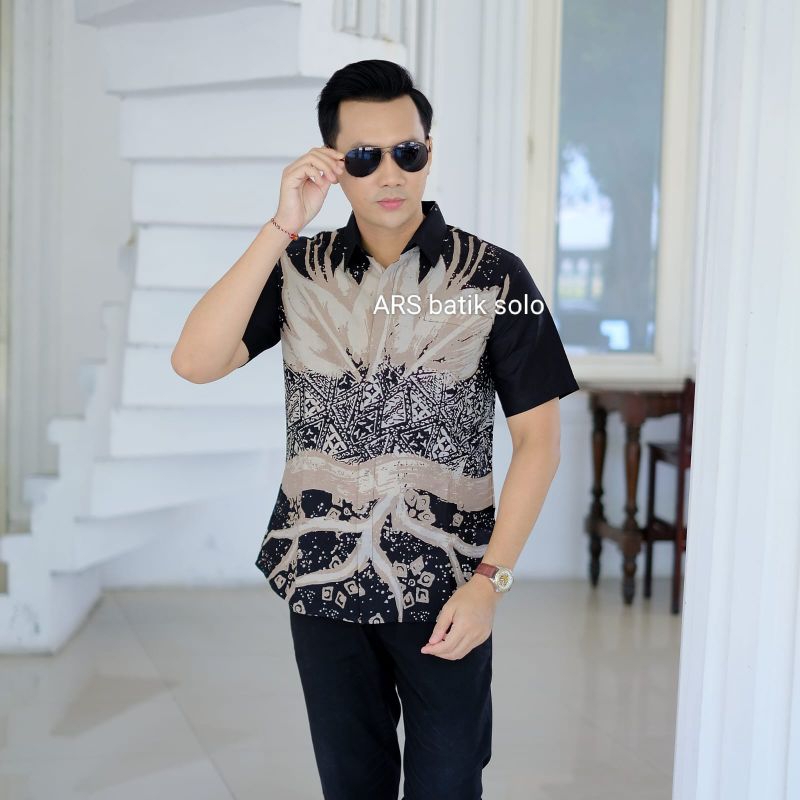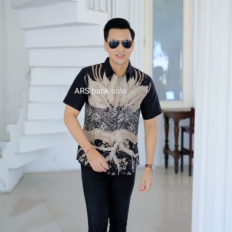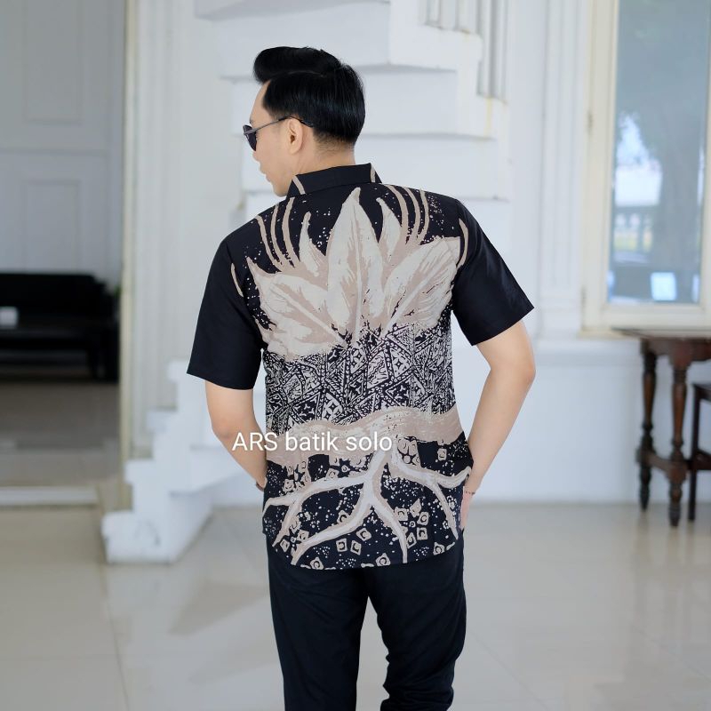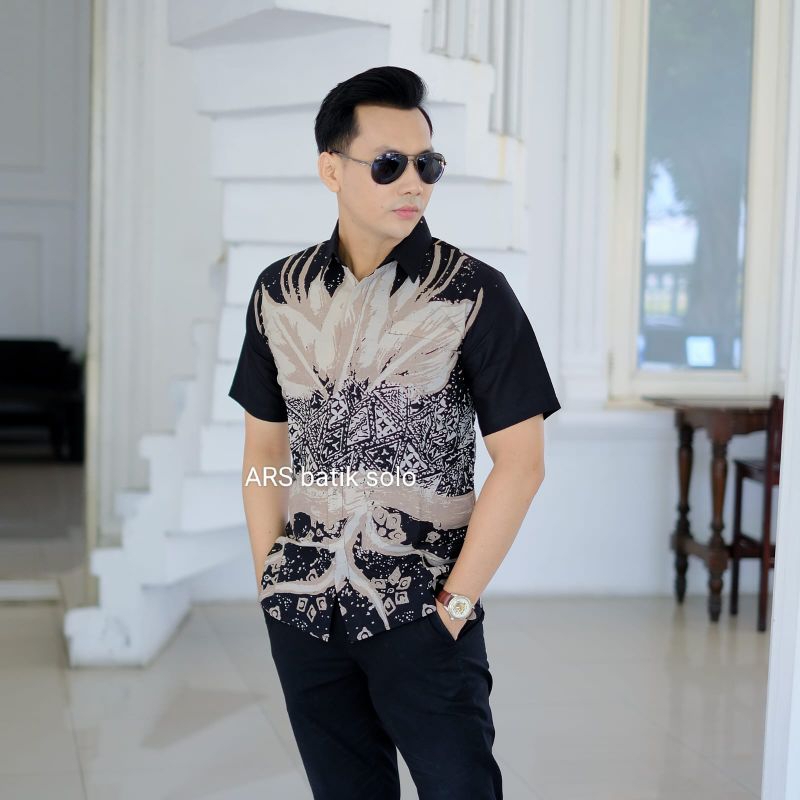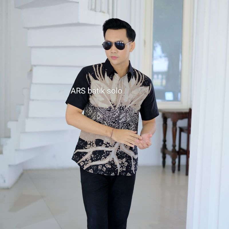 KEMEJA BATIK PRIA LENGAN PENDEK MAHAMERU HITAM PUTIH BATIK PRIA SLIMFIT BAHAN KATUN HALUS