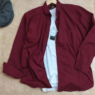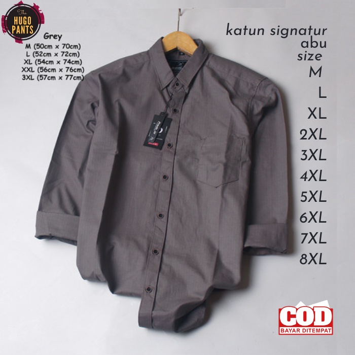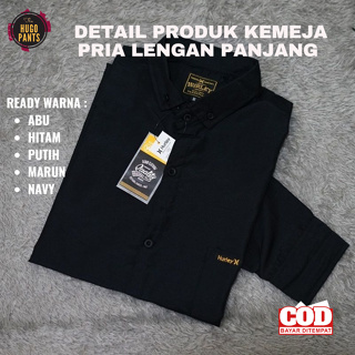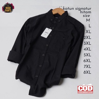(Gratis Ongkir) Kemeja Formal Pria Jumbo Hitam Lengan Panjang Bahan Katun Puplin Cowok Dewasa