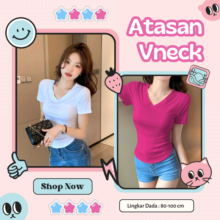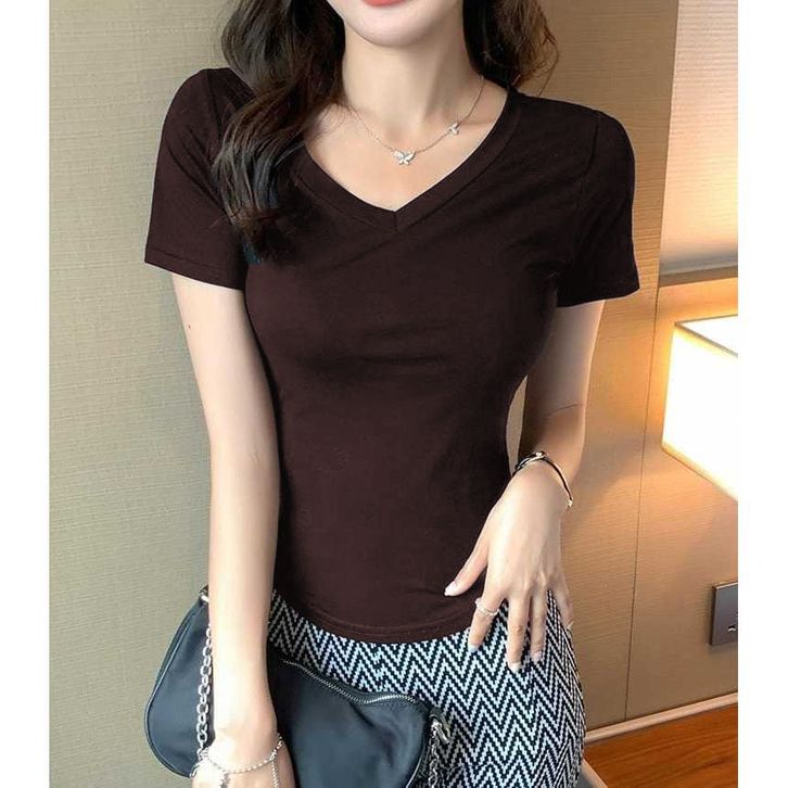 Kaos Wanita V Neck Atasan Polos Wanita Short Sleeve 6028