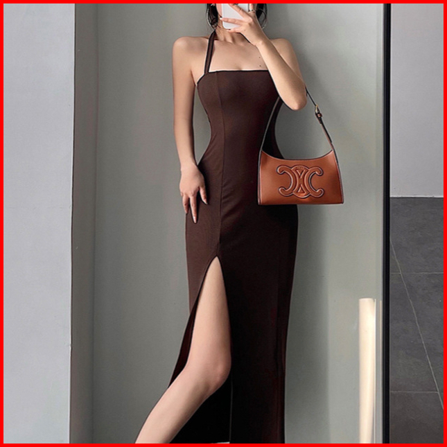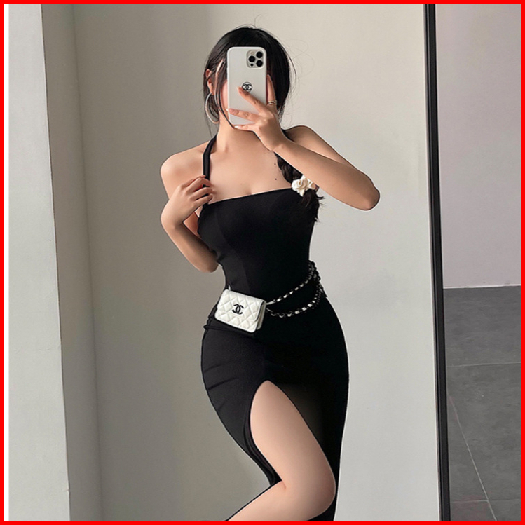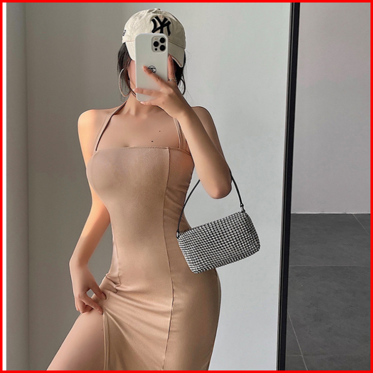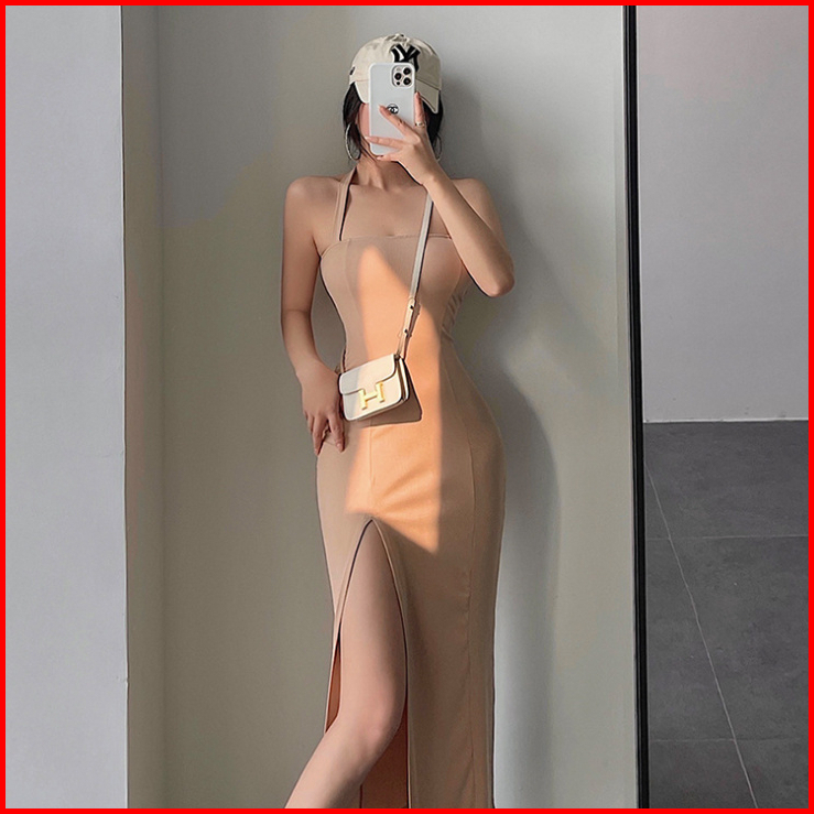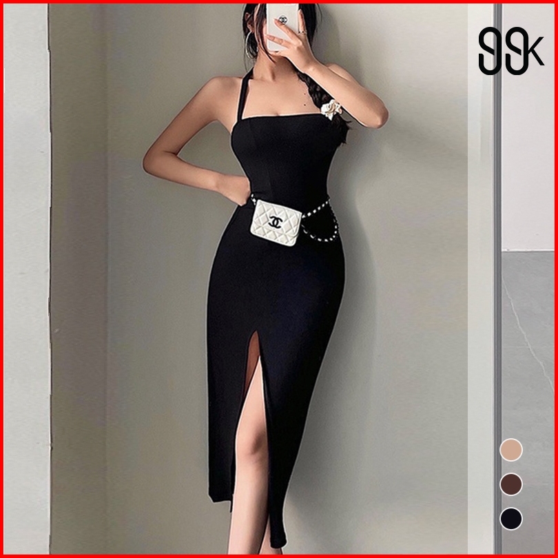 Midi Dress Bodycon Halter Neck Slim Side Split 1737 S M L Xl