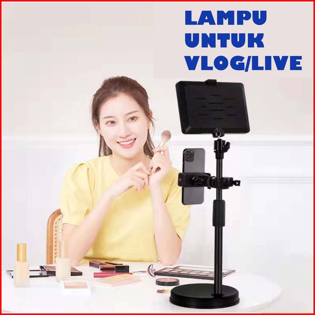 Lampu Led Stand Untuk Shooting Vlog Konten Kreator Masak Make Up Lighting Phone Holder Set Lampu Youtuber