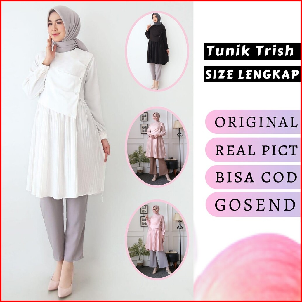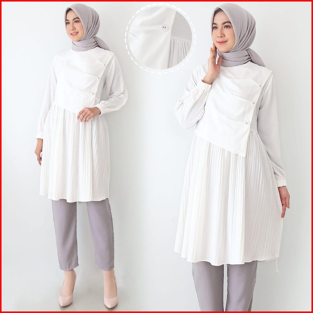 Tunik Putih Polos Atasan Wanita Muslim Ld 110cm Xs S M L Xl Trish