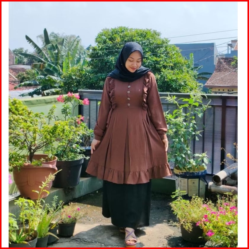 Tunik Polos Rempel Tali Samping Bahan Syakila Dan Crincle Tunik Wanita Murah