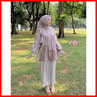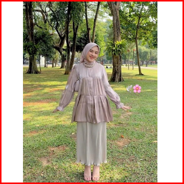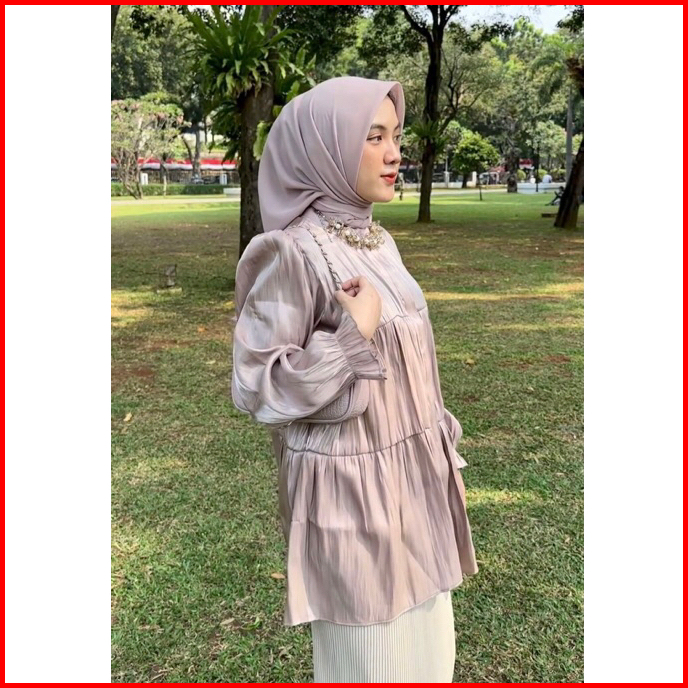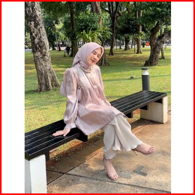 Kahlaa Tunik Shimmer Silk Premium Warna Ash Rose Atasan Shimmer Morocco Tunik