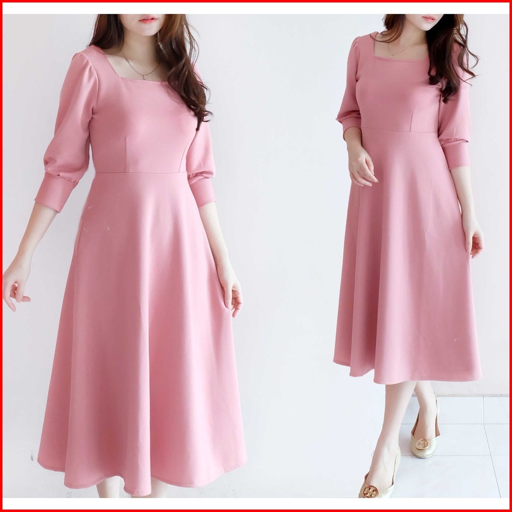 Dress Nindy Dress Scuba Dress Wanita Kekinian