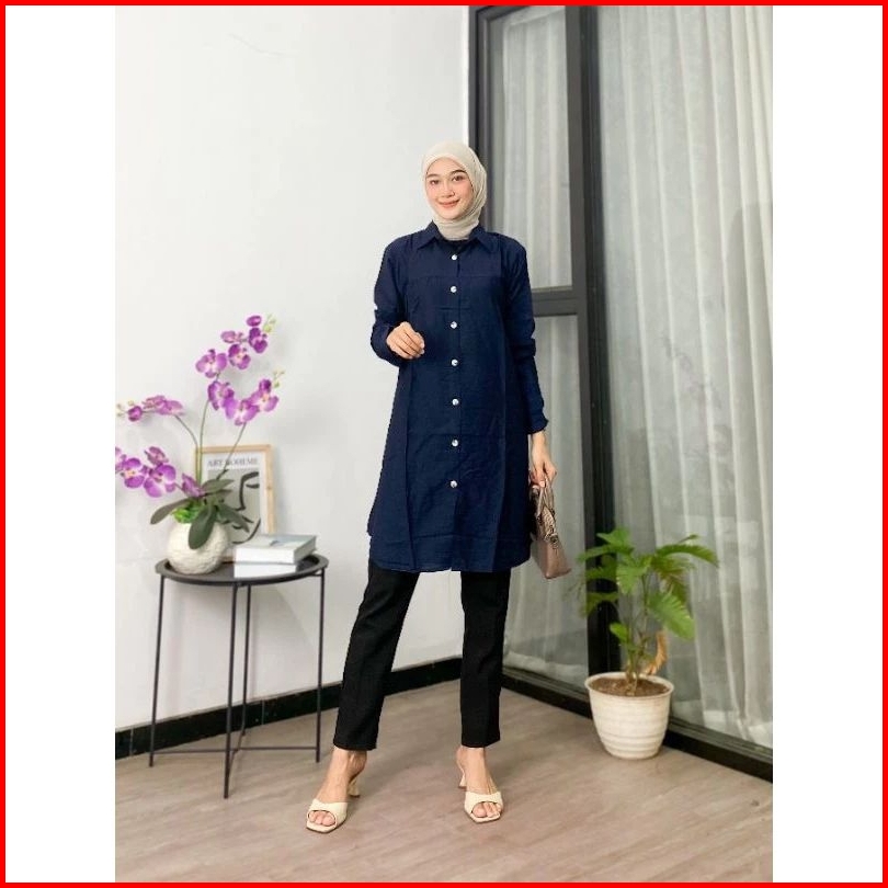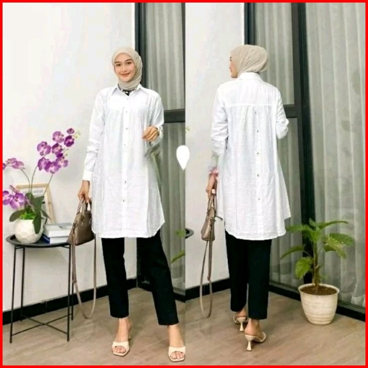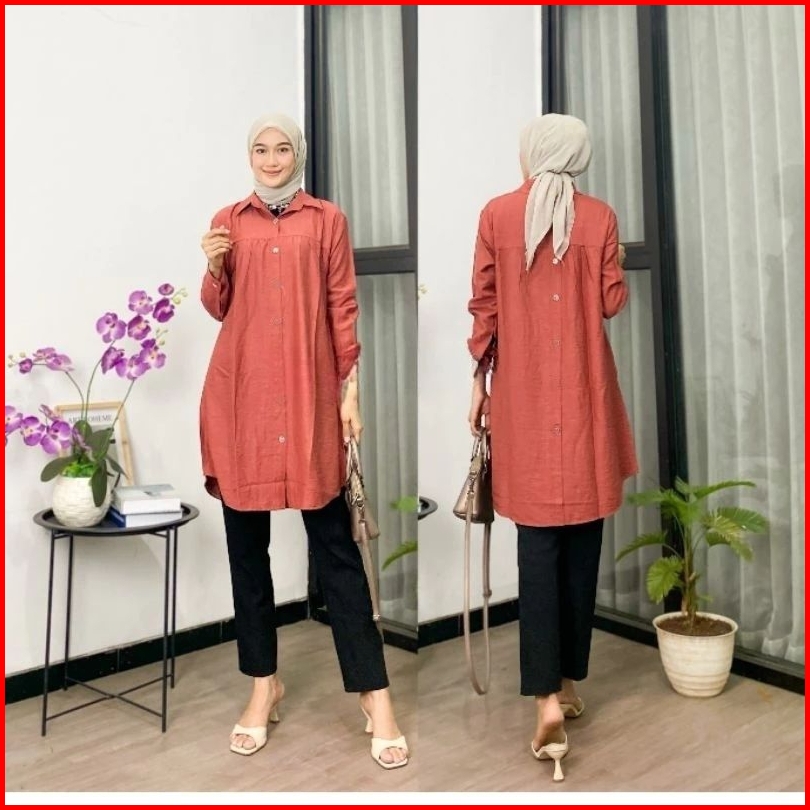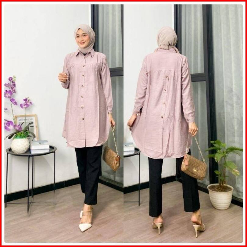 Atasan Tunik Zeva Tunik Polos Polo Linen Variasi Kancing Belakang Busui Friendly