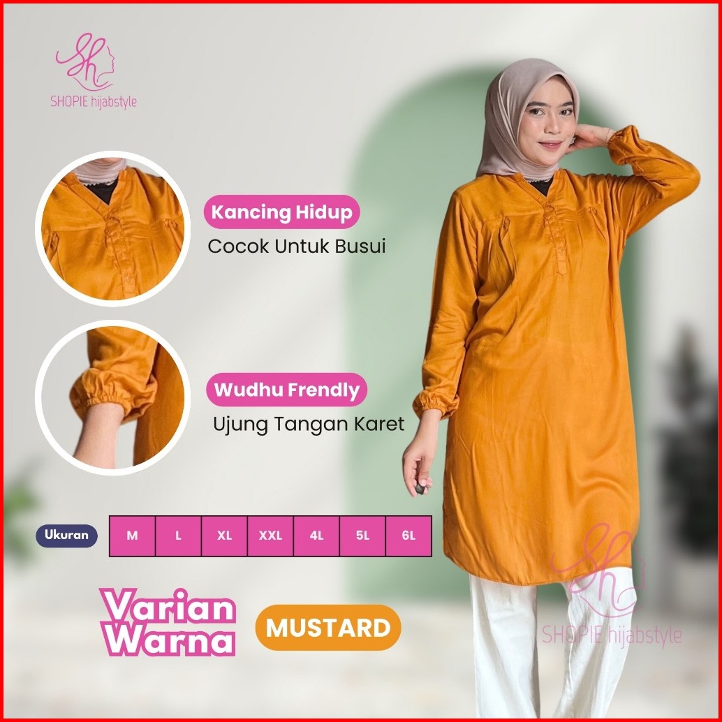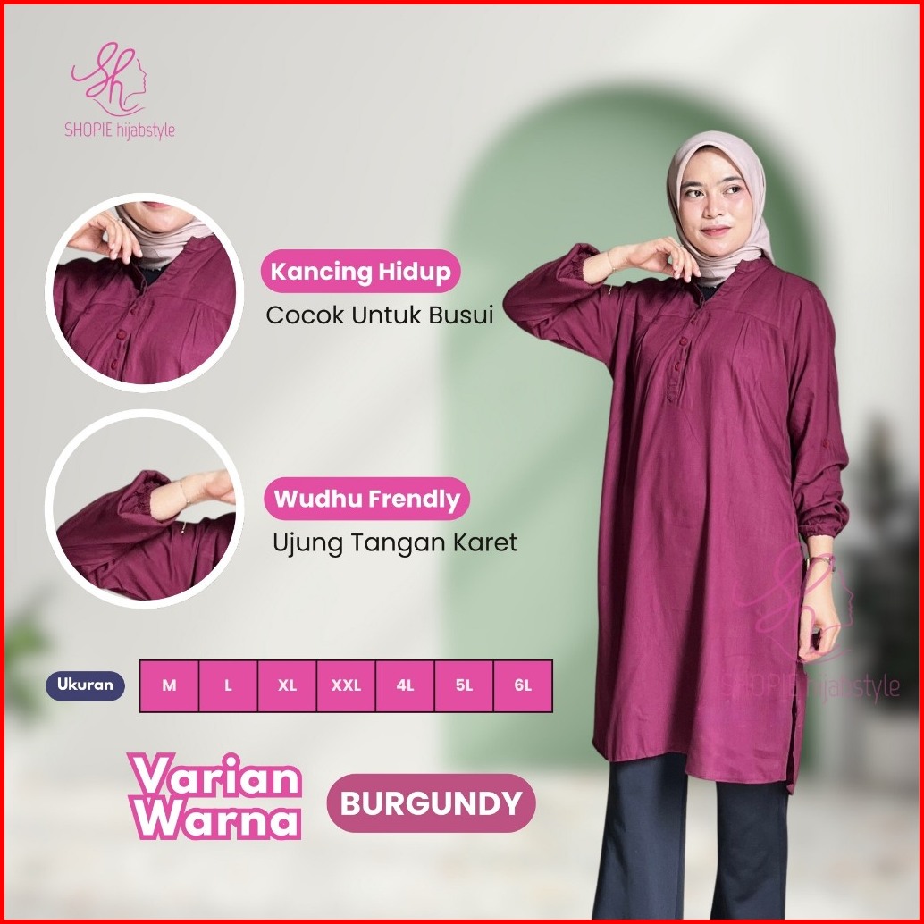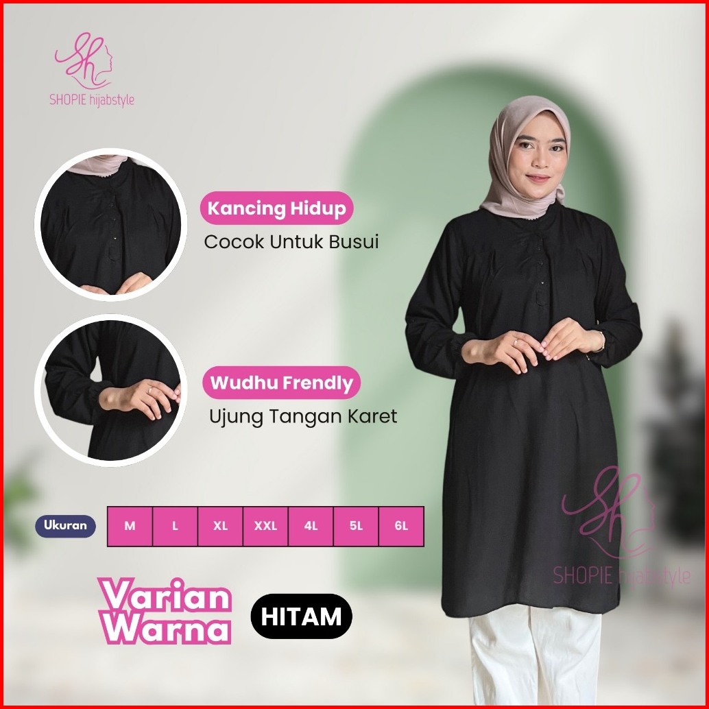 Tunik Rayon Polos Wanita Lengan Panjang Bahan Adem Atasan Muslim Busui Friendly Lengan Karet