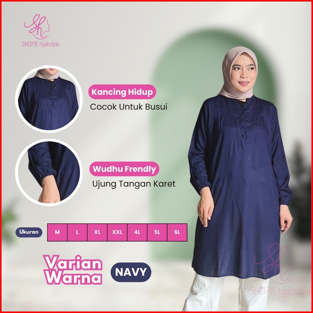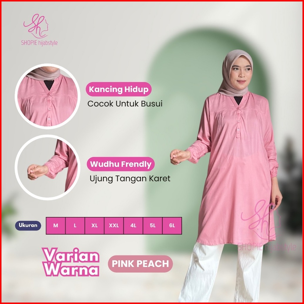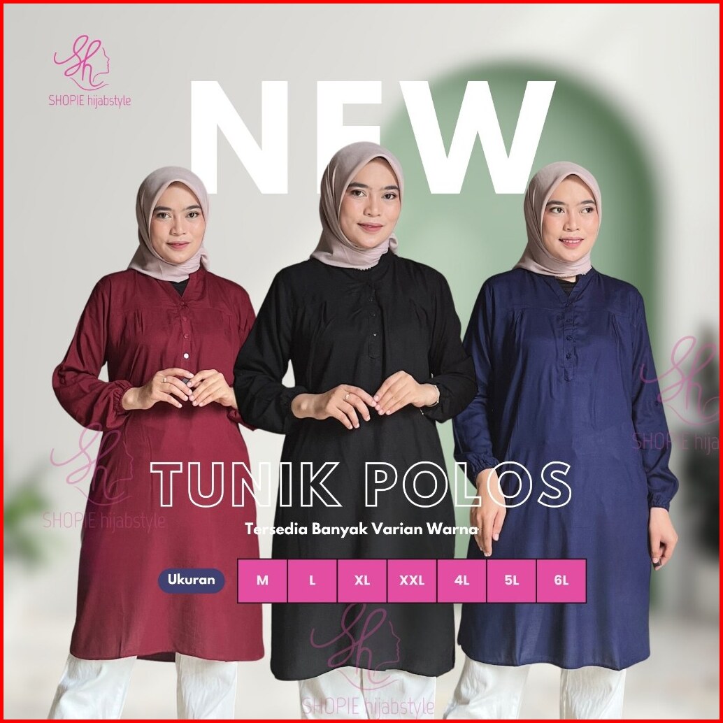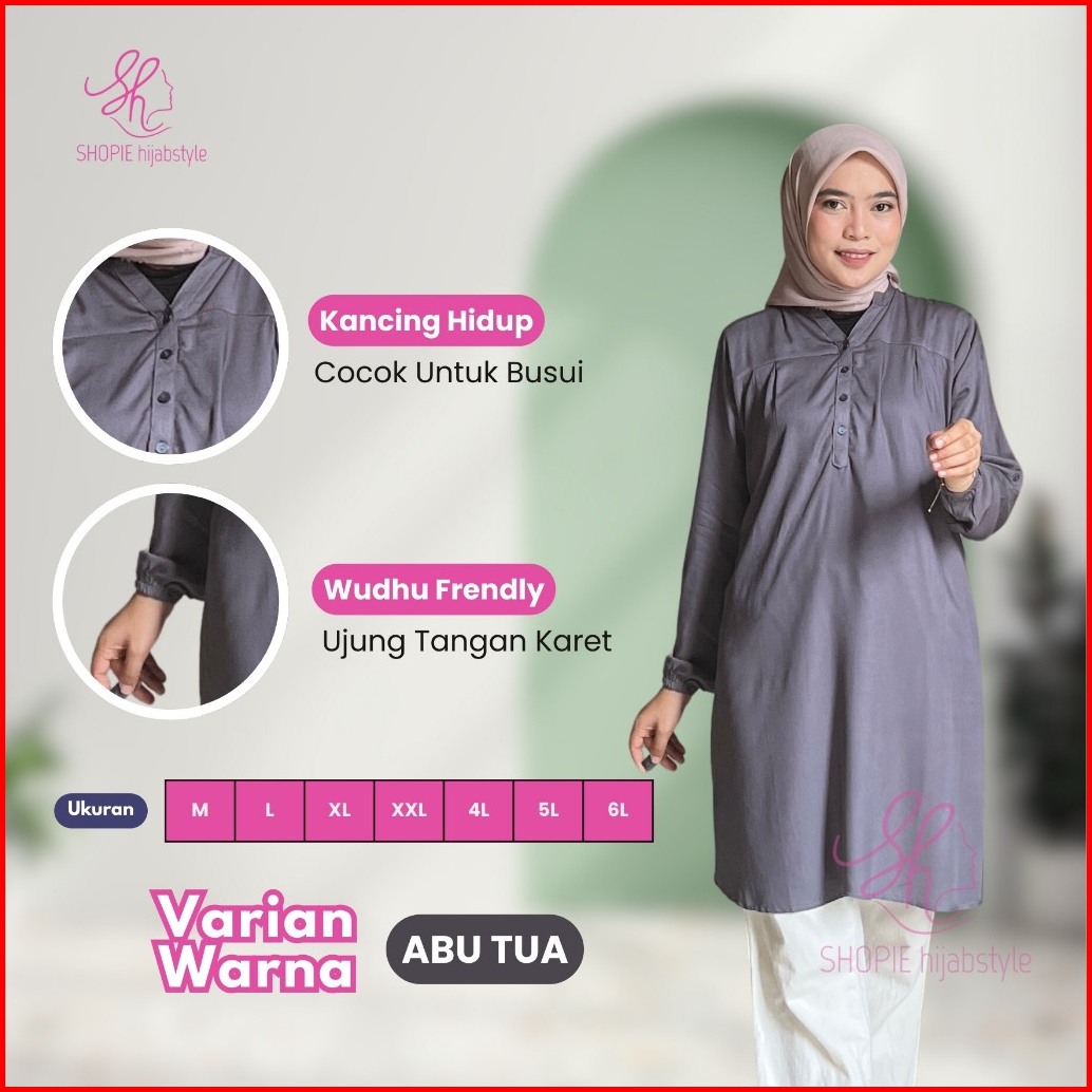 Tunik Rayon Polos Wanita Lengan Panjang Bahan Adem Atasan Muslim Busui Friendly Lengan Karet
