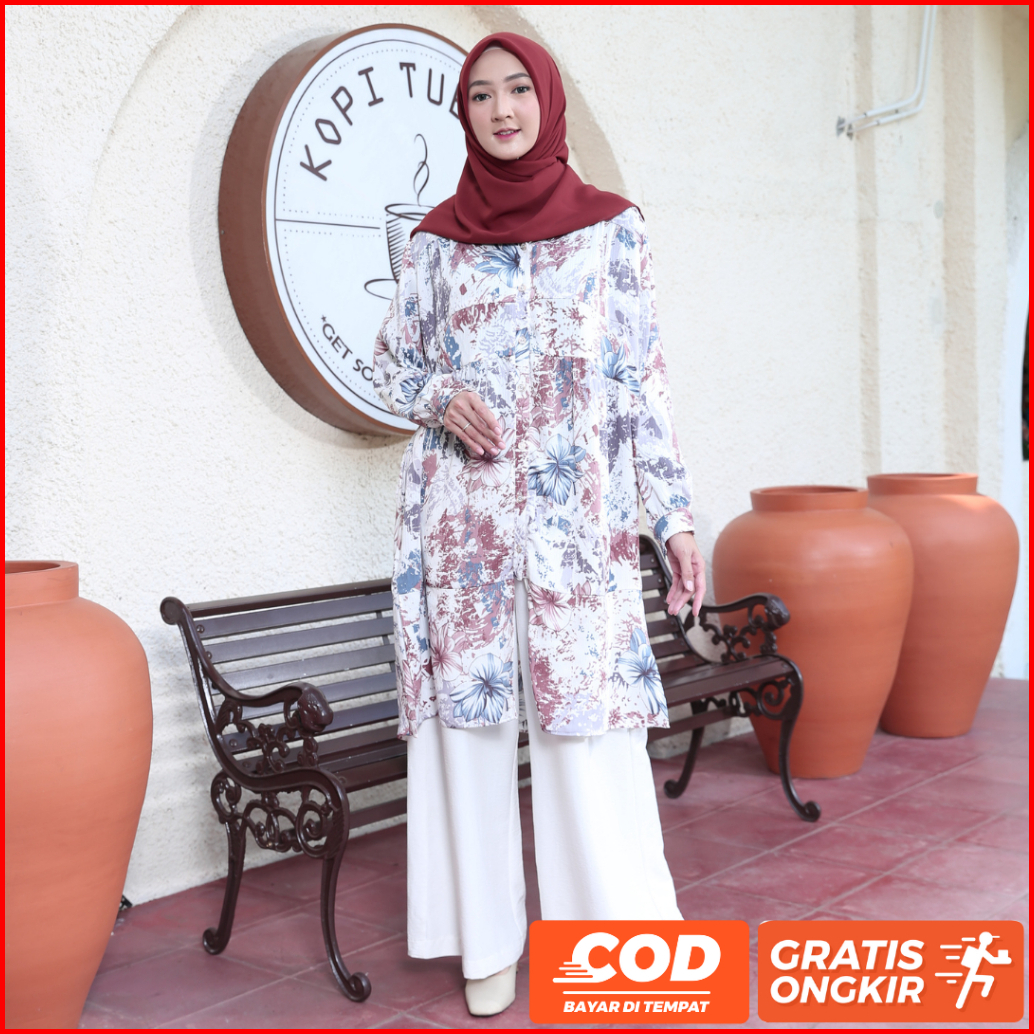 Kalasiris Blouse Kemeja Tunik Atasan Motif Crinkle Silk Print - Rosa Series