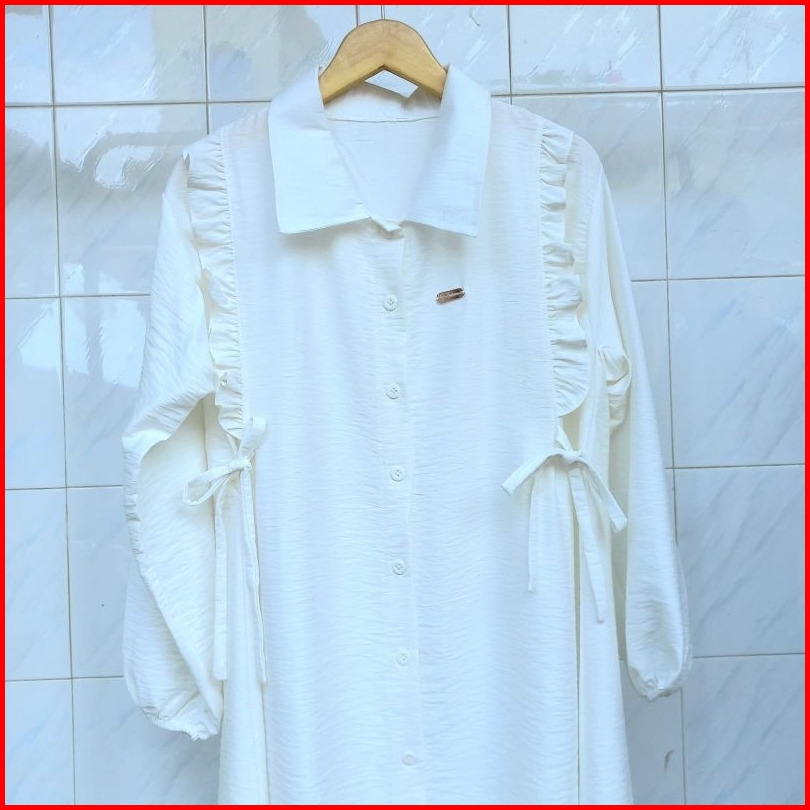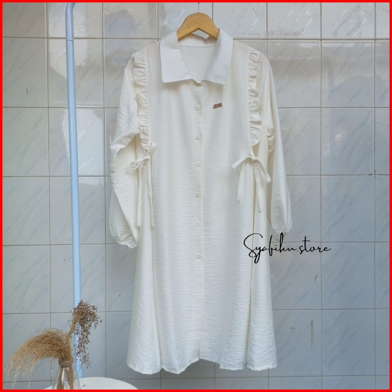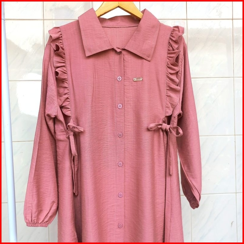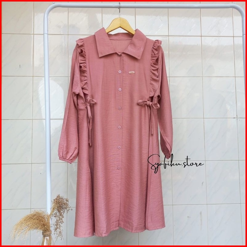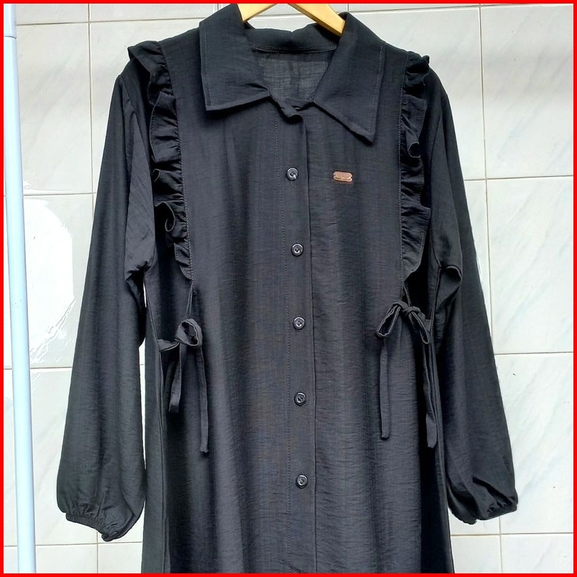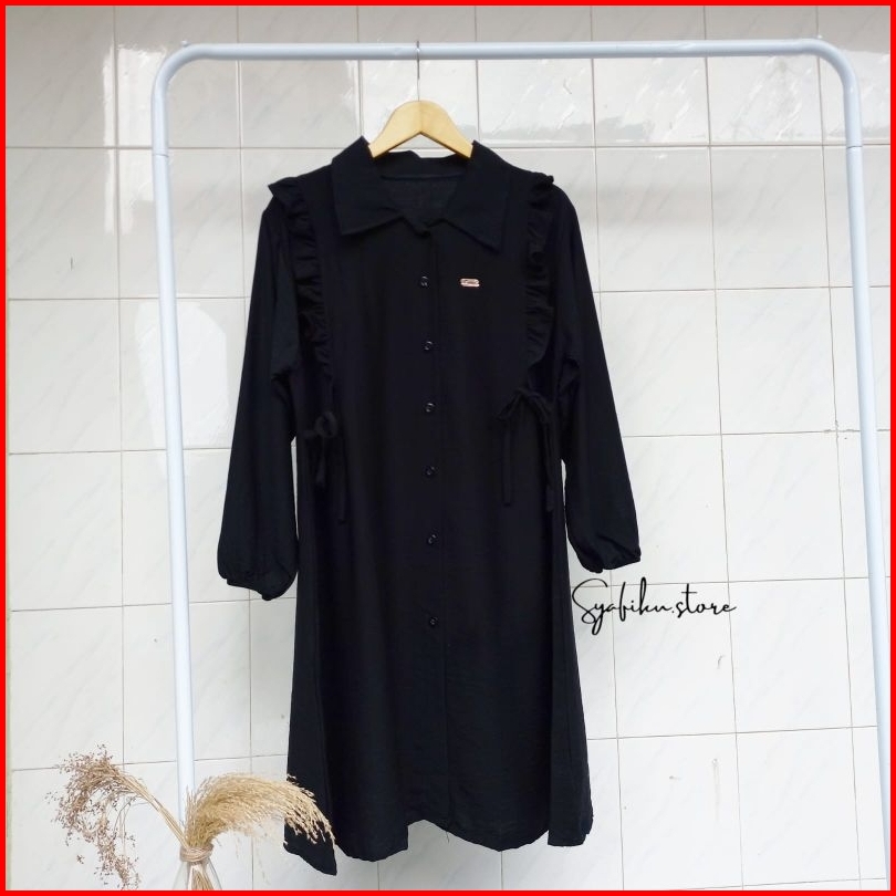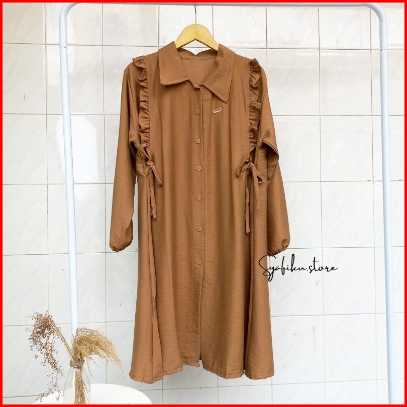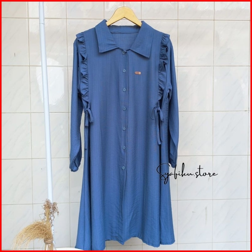 Shafira Long Tunik - Tunik Polos Wanita Dengan Motif Kancing Aktif Dan Tali Pinggang Tunik Busui