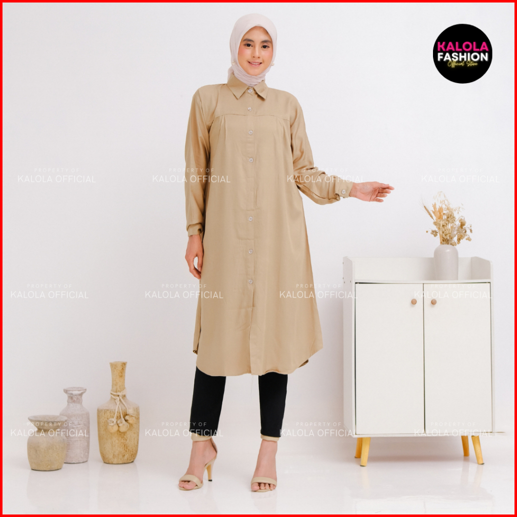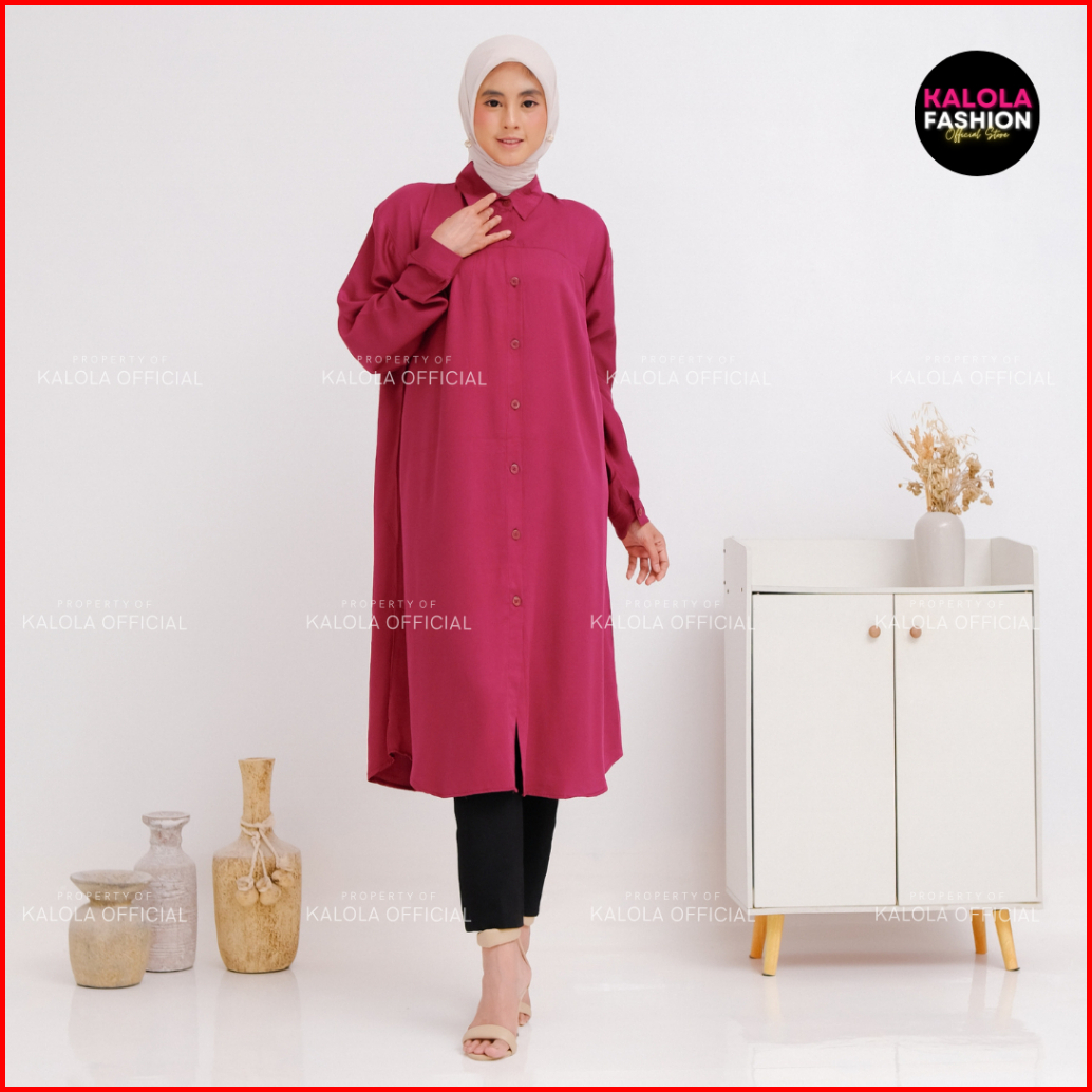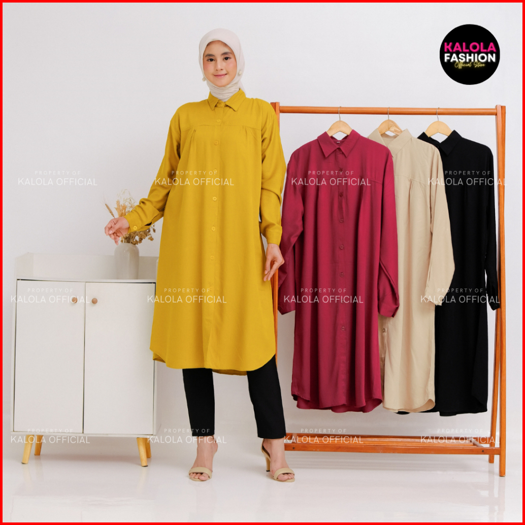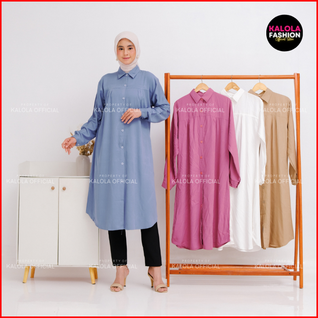 Kalola Tunik Rayon Twill Kemeja Polos Wanita Kekinian Tunik Polos Kancing Depan Belakang Variasi