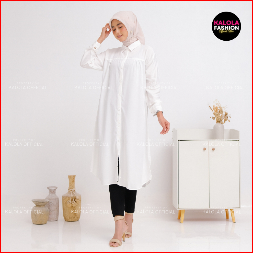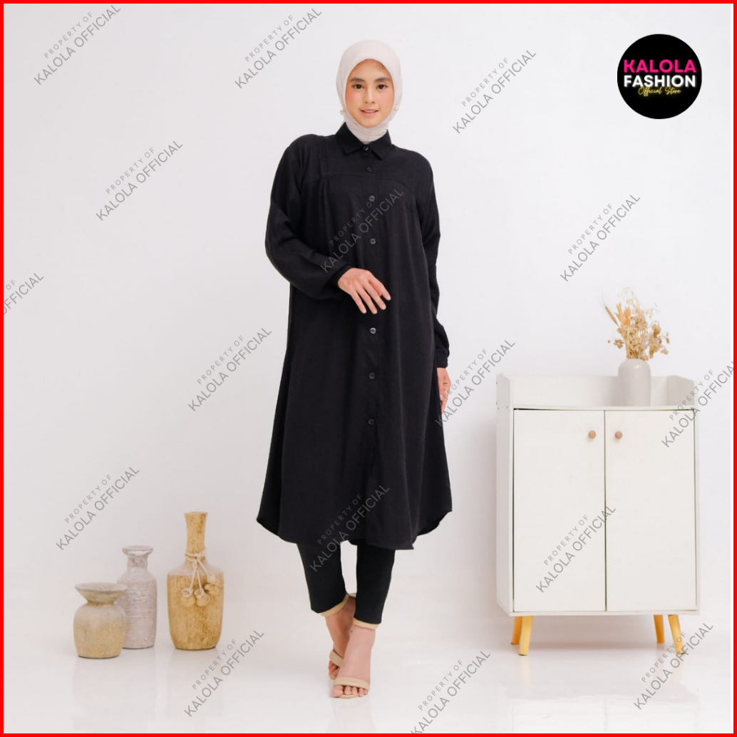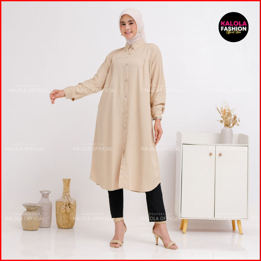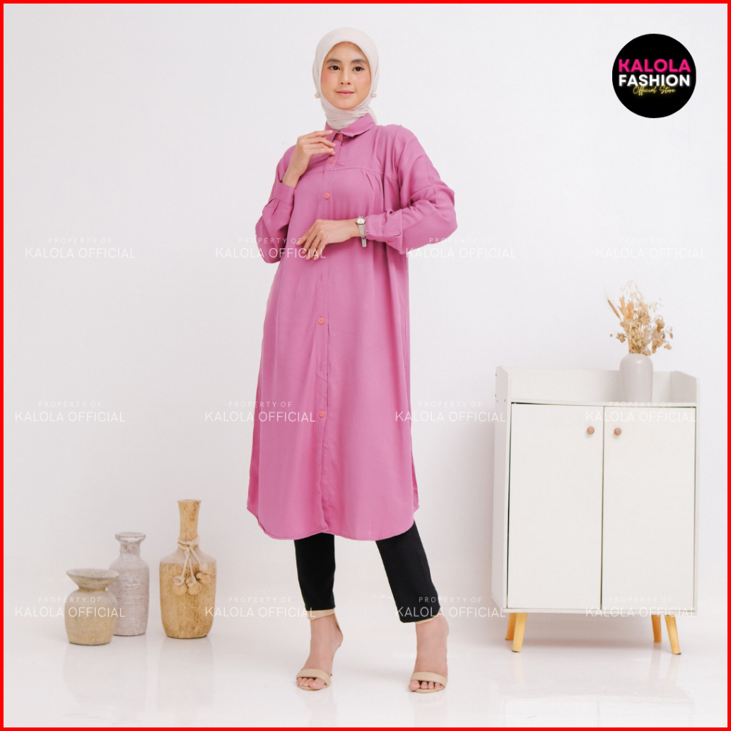 Kalola Tunik Rayon Twill Kemeja Polos Wanita Kekinian Tunik Polos Kancing Depan Belakang Variasi
