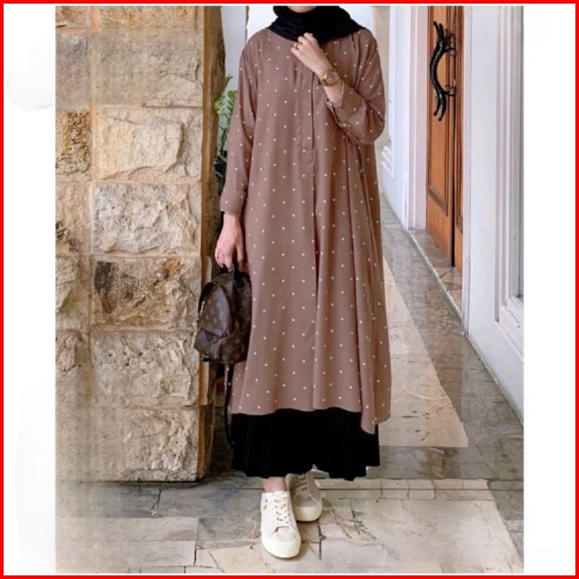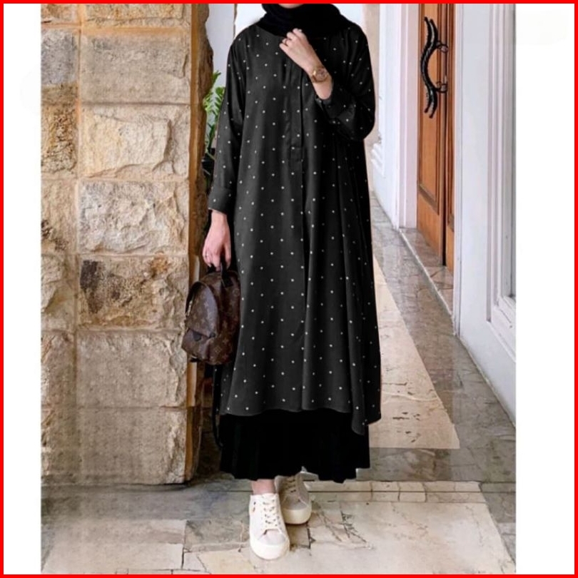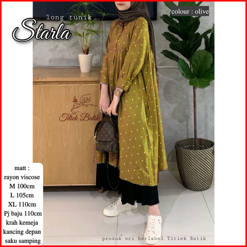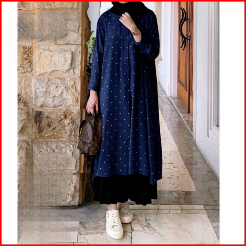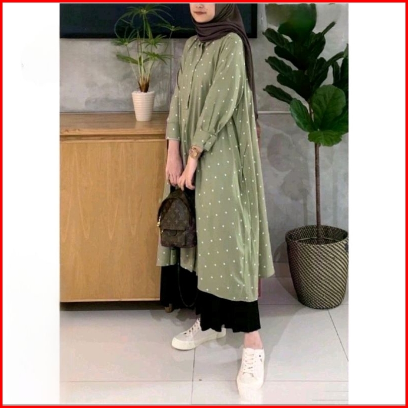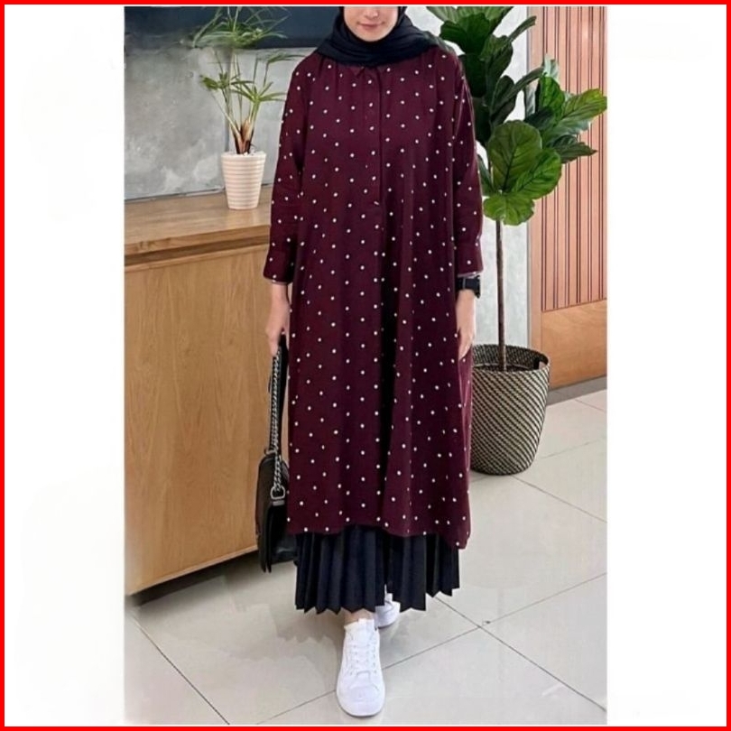 New Bestseller Tunik Wanita Terbaru Starla Longtunik . Baju Motif Polka Bahan Rayyon Viscose