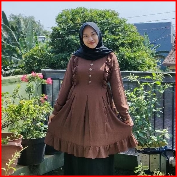 Tunik Polos Rempel Tali Samping Bahan Syakila Dan Crincle Tunik Wanita Murah